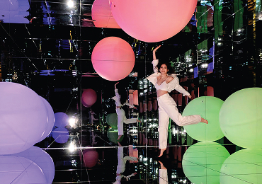 Past–Present–Future in one view; Bang Kachao against the skyline; telescope views toward Suvarnabhumi; after dark: Immersive Helium Chaotic Balls.