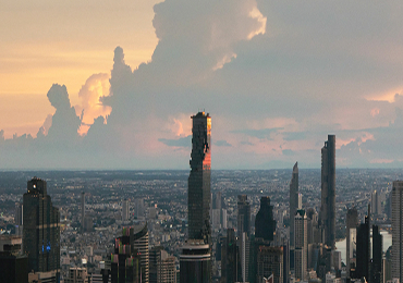 360° at 276 m: river, Rattanakosin, modern skyline.