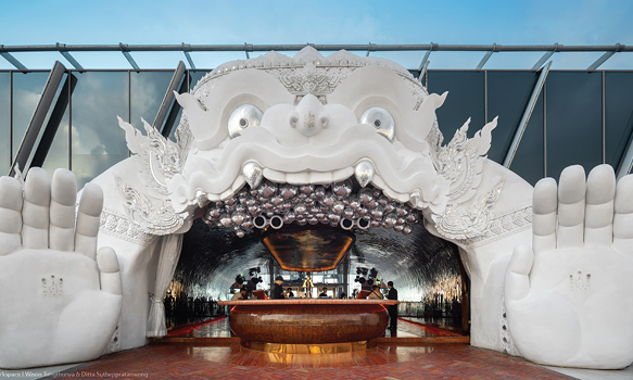 Past–Present–Future in one view; Bang Kachao against the skyline; telescope views toward Suvarnabhumi; after dark: Immersive Helium Chaotic Balls.