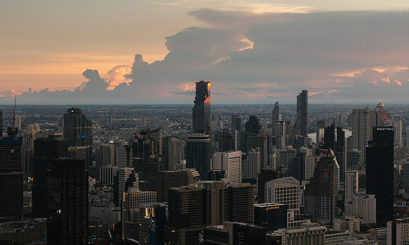 360° at 276 m: river, Rattanakosin, modern skyline.